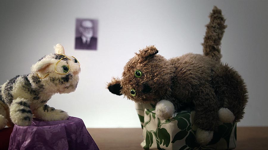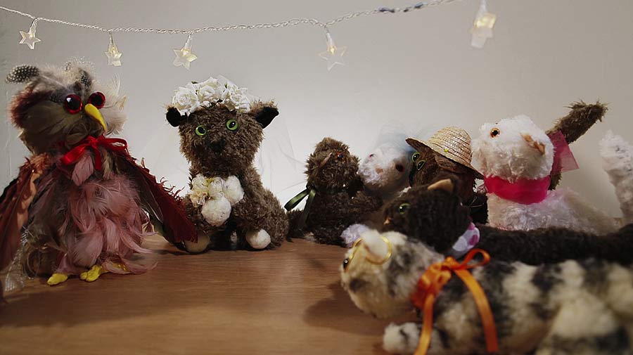 Therapy Animal Story is a video that is based on a story that is written and read by Ulla Salo-Pulliainen in Johanna Lecklin's art project Story Café in Helsinki 2006. It is a fairytale of a marriage between the Little Cat and the Owl. The marriage between the animals reminds of marriage between two very different and unhappy persons. In the video three readers read the story and between the read sequences animated characters show the life of the Cat and the Owl.